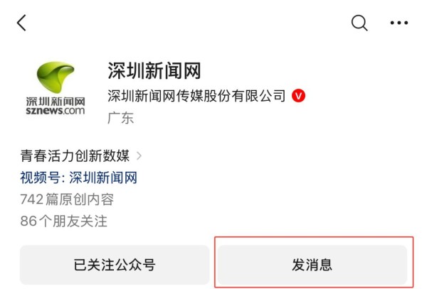 1. 关注深圳新闻网微信公众号