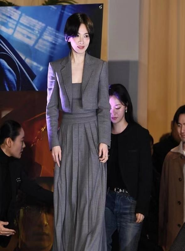 趁着这短发潮流正劲,咱们再瞧瞧宋慧乔的穿衣风格,以前她多是甜美的公主风,这回一变,风格变得更有力量感了。