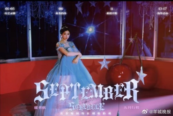明星9月行程图公开,迪丽热巴白鹿等行程引关注