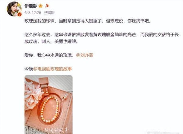 演员伊能静发长文谈《玫瑰的故事》,刘亦菲回应:感恩相知!