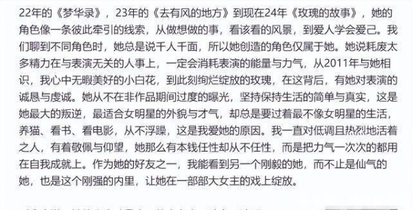 伊能静发长文评《玫瑰的故事》,大夸老友刘亦菲:她的人生才是真正的大女主,独立清醒