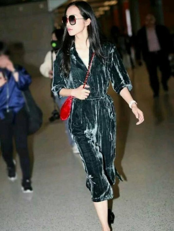而韩雪出行阵仗可以说是最简单的了,一个人在机场大步流星,如果不是出众的颜值相信路人根本就不会注意到她是一个大明星,实在是太接地气了,一身墨绿色的连体睡衣看上去高贵又优雅,而且显得韩雪非常有名媛的气质,不得不说韩雪在任何场合的状态都是好的,连穿睡衣都穿的那么有涵养。