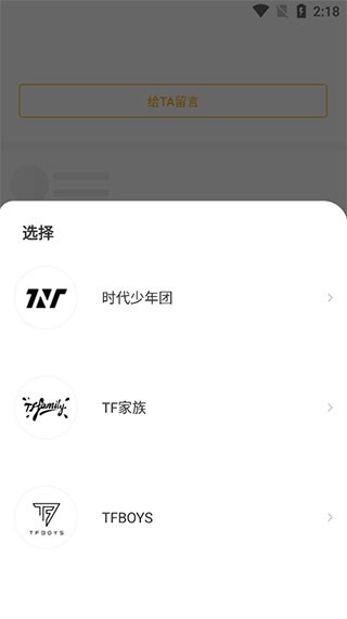 2、选择你喜欢的明星团,进入后你可以在这里在线留言,和你喜欢的明星互动。