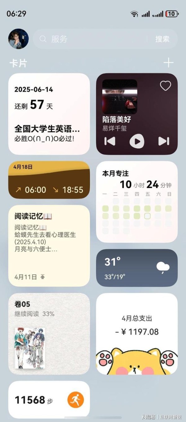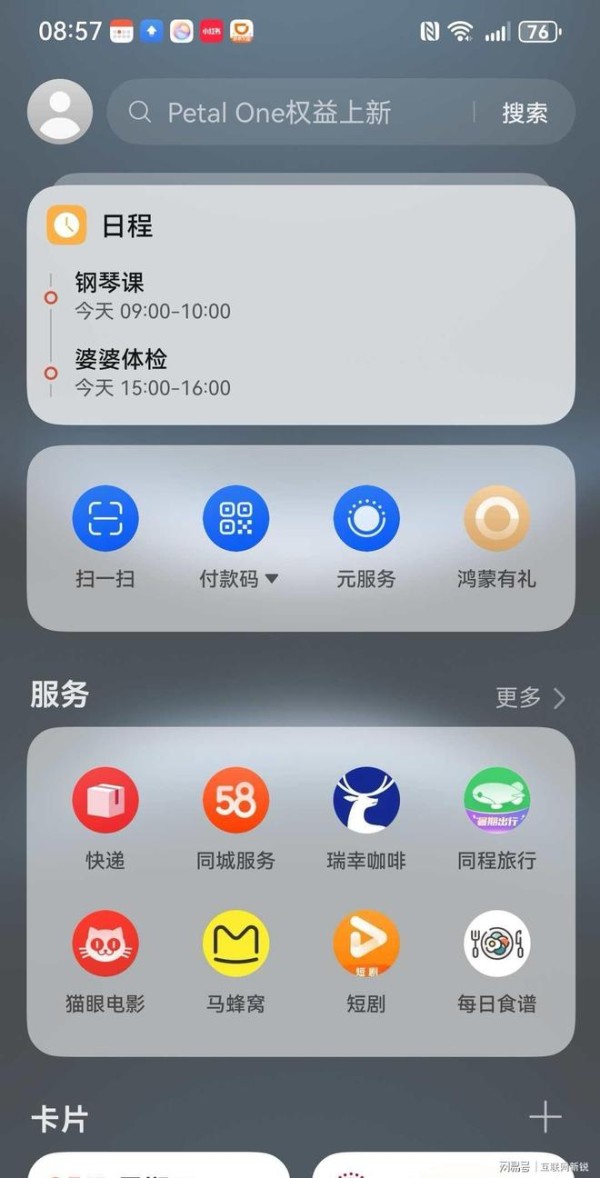 他最开心的就是负一屏把这些常用的APP聚合到一起,避免了桌面这一下、那一下的麻烦。“就挺直观的,之前我都要进到APP里才能看到的信息,现在右滑就直接看到了,我觉得对我这种考研党来说特别实用。”晚上或周末偶尔学累了的时候,他也会点开短剧元服务,“不用下载APP,无脑的爽文剧情还很解压,看完哈哈一乐”。