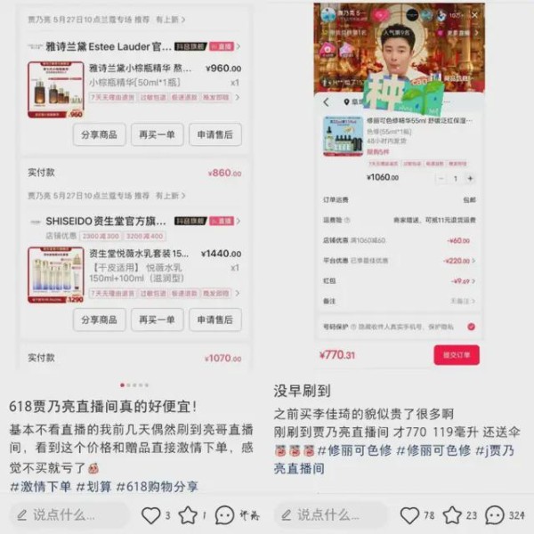 在贾乃亮参与的618直播活动中,许多商品都获得了抖音平台的高额补贴,尤其是一些知名品牌的产品。有消费者在社交媒体上分享了自己的购物体验,表示在贾乃亮直播间很便宜。还有消费者表示比李佳琦直播间还要便宜。