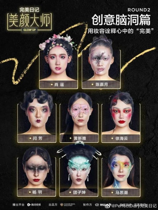 以艺术美学维度而言,将艺术与人脸进行一种高级审美的创意结合,会给观众带来一种美学烈度上的视觉冲击。所以说,《美颜大师》的重点不是教大众如何一步一步地化妆,而是展现彩妆美学,为观众打造一种视觉美学艺术。诸如首期节目创意脑洞环节,以“完美”为主题,8位选手相继带来丰富多彩又极具视觉美学的创意妆容,宇宙星河创意彩妆、玉璧中国风妆容、瓷器裂纹面具妆等,让人记忆犹新。所以,你会发现这档节目的两个重点分别是彩妆和艺术,最关键是将其精巧融合、呼应主题。