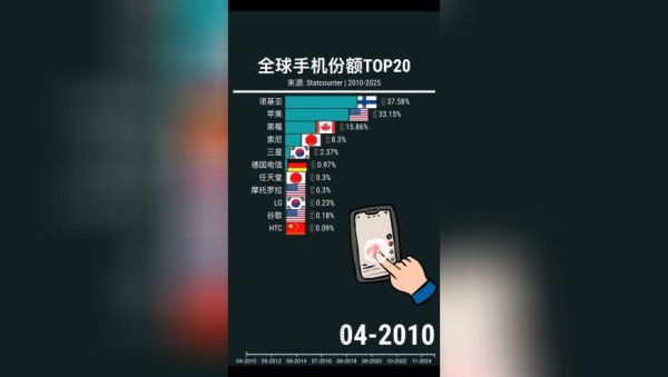 全球手机市场份额排行2010-2025!