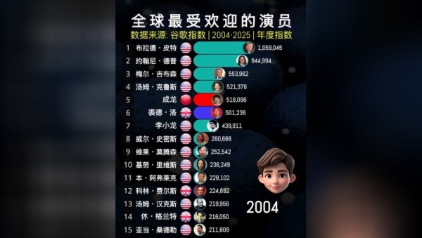 全球最受欢迎的男演员2004-2025.