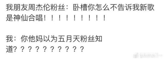 2019年9月16日晚11点,五月天还给了大家一个惊喜,周杰伦最新单曲《说好不哭》上线。《说好不哭》由周杰伦搭档老朋友方文山合作完成,主题围绕“成全”和“约定”,以钢琴、弦乐编织出了一个凄美的爱情故事。令人惊喜的是,在歌曲和MV的后半段中,还出现了五月天主唱阿信的声音与身影——两位经常在社交网站上互动的“大儿童”,终于在这首歌中达成了合作。甚至网友们还出了一个段子。