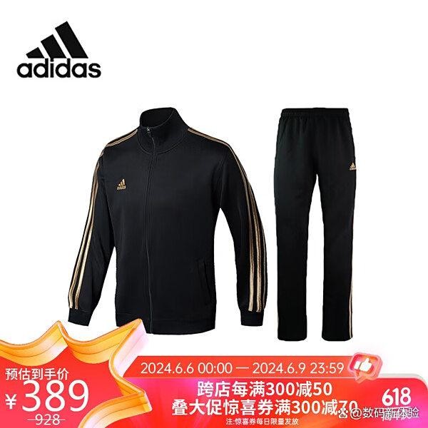 三、阿迪达斯 运动套装男秋季外套长裤两件套跑步运动套装 黑金 XL