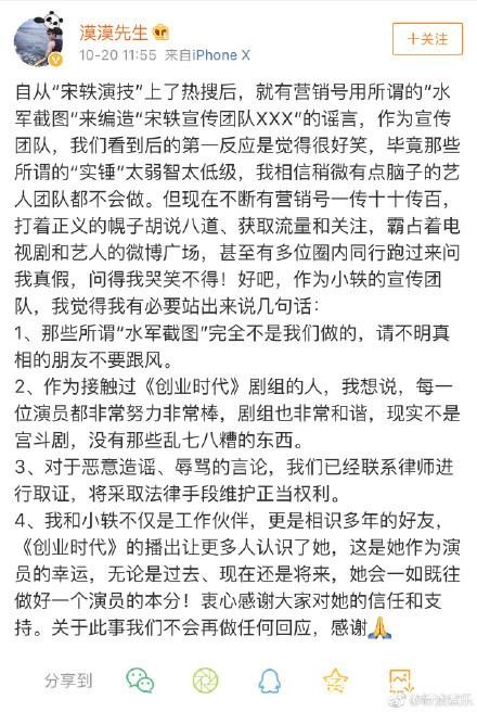 不过在娱乐圈总是有那么多的是是非非,但凡热门电视剧,多少总会有些非议,“宋轶水军”的消息在网上也是引起了一片讨论,宋轶工作室也是紧急做出声明。