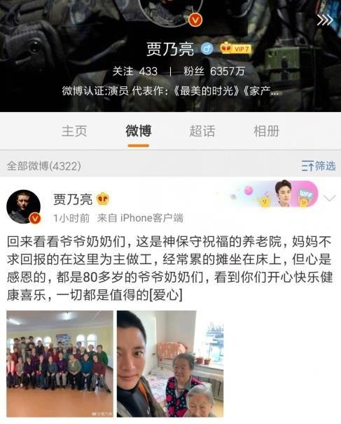 在这段话下面的配图,则是两张贾乃亮和贾母,还有养老院的爷爷奶奶们的合照。第一张照片里,是一堆老爷爷老奶奶们坐在一起,贾乃亮和贾母则站在最后一排,贾乃亮还张开双臂搂着前面的爷爷奶奶们。大家在镜头面前都笑得十分开心,应该是一起度过了开心又有意义的一天。