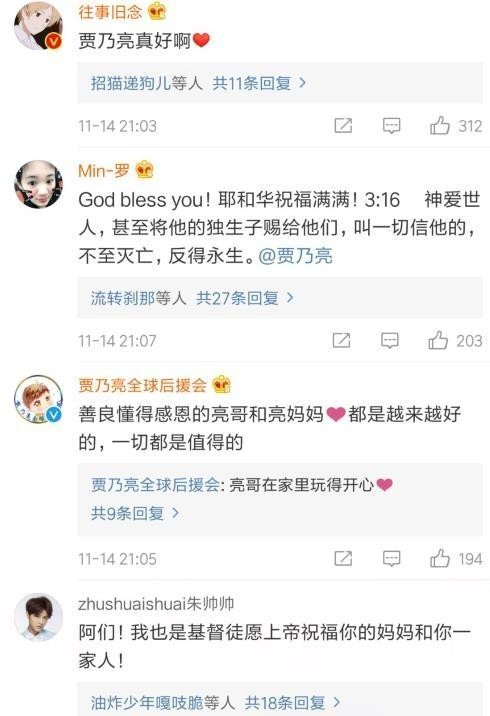 值得一提的是,大家没想到贾乃亮的母亲贾母还是一个信教者。从贾乃亮晒出的照片来看,60多岁的贾母梳着一个精心烫过的头发,看起来精神十足,一脸和善。从贾乃亮的动态中大家可以知道,贾母不仅看起来面容和善,实际上也很善良。一把年纪的还在养老院里不求回报的为80多岁的老爷爷老奶奶们服务,很少有人能做到这一点。特别是在大家看到贾乃亮称,贾母累到瘫在床上也没有怨言,反而觉得很开心的时候,大家也是纷纷祝愿贾乃亮的妈妈能够好人有好报。