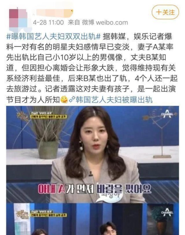 韩国艺人夫妇被曝双双出轨,4人还曾一起旅游?