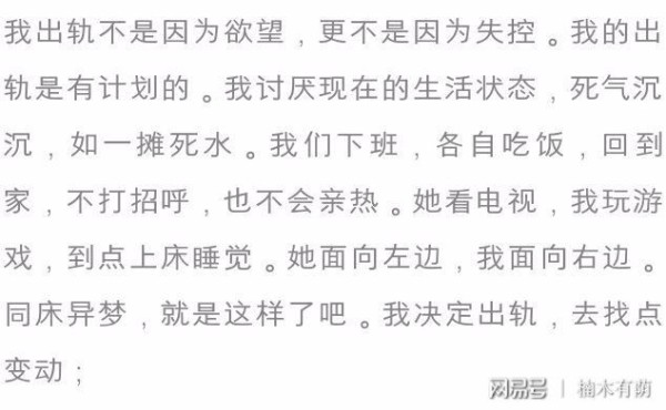 有人曾做过一个测试,调查“你为什么出轨”虽然回答千奇百怪,可是不外乎有三种