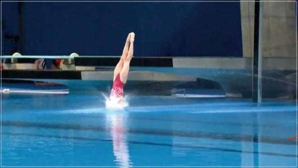 进入第二跳,全红婵的状态愈发火热。她选择了难度极高的动作,却依然游刃有余。起跳、翻转、入水,每一个动作都如行云流水般自然流畅。更令人惊叹的是,她的入水角度几乎完美,几乎没有任何瑕疵。当分数显示出来后,全场观众都为之沸腾——满分!这是全红婵在东京奥运会上的第二个满分!