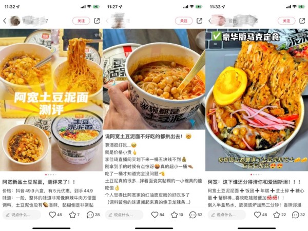 作为方便速食品类的新物种,阿宽土豆泥泥面的“汤面做法+拌面吃法”是阿宽首创,消费者将面饼和调料加入碗中,加水至注水线等待6-7分钟,就可以食用。冲泡的方式能还原手擀面的口感,当面条和土豆泥融合,每一根面条都裹满土豆泥带来的黏黏糊糊的满足感。