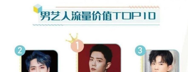 男艺人流量价值排名:肖战稳站第一名老位置,蔡徐坤却无缘前三!