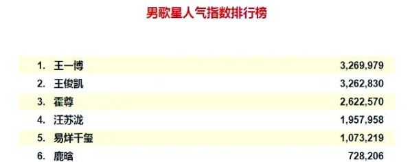 接下来,就让我们一起揭晓近期男歌手人气排行的榜单。令人瞩目的是,榜单的榜首位置竟出乎众人意料,而肖战与王俊凯则分别位列第二、第三。