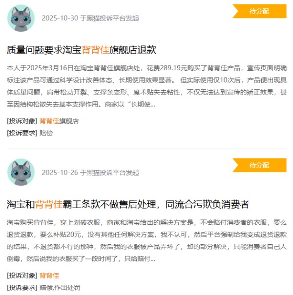 除了针对产品功效的质疑,也有不少消费者在购买背背佳之后吐槽塑料味刺鼻、穿上之后甚至有种窒息感,黑猫投诉平台上有关背背佳的投诉大多集中在产品质量问题和欺骗消费者等。