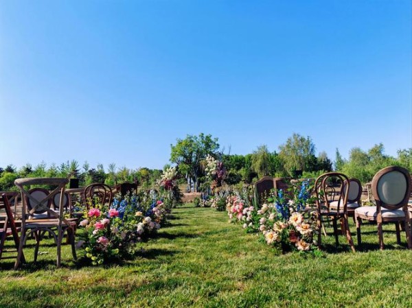 现场环境可谓别具一格,并未选择豪华酒店,而是设在河边的草地上。婚礼地点选在河边草地上,虽显随意但也带来一种别样的趣味。雨后初晴,泥泞小径随处可见,就连地上的花瓣也显得杂乱无章。道具摆设仿佛是杂货铺的拼凑,缺乏高端氛围,反而透出一种别样的随意。
