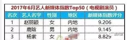10月艺人新媒体指数Top50,李易峰赵丽颖居榜首