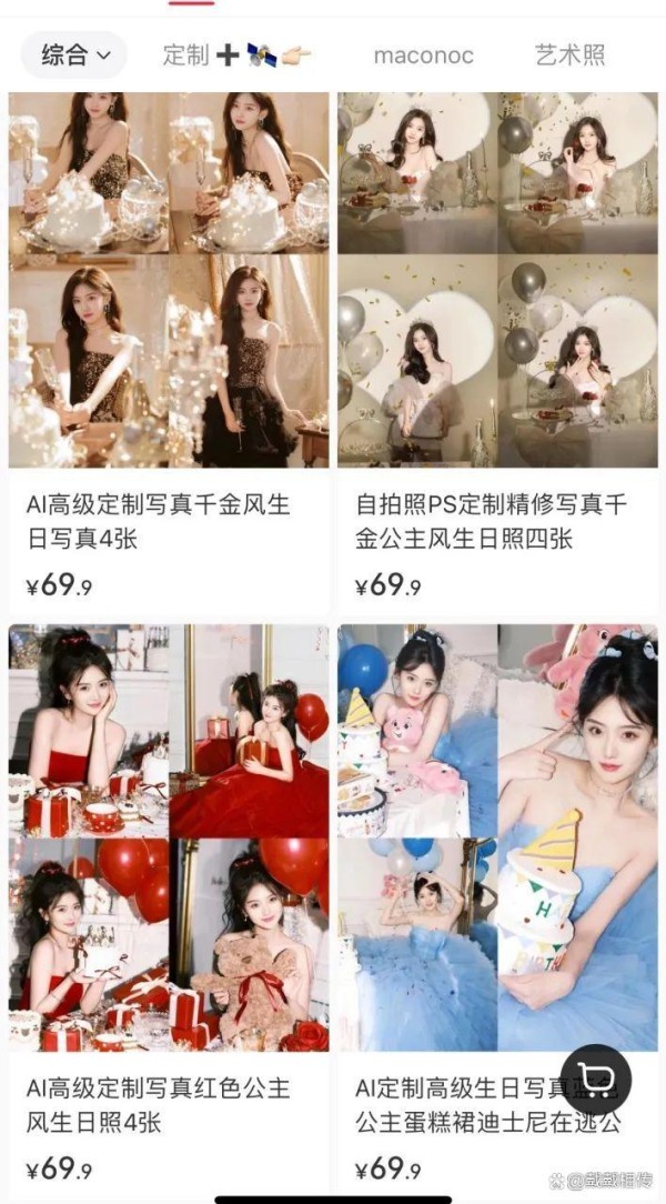 看这些某书的店铺,就是利用简单的AI绘画技术,生成写真照片后稍作修改,就变成了“精修图片”。几张自拍几十块钱,就能定制两套高级形象照,不少现在的年轻人去买单,感觉不是钱不钱的问题,是因为年轻人大多太“懒”。