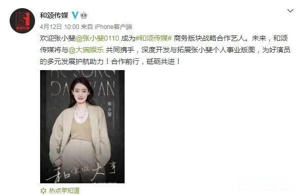 张小斐签约和颂传媒,联手李冰冰赵丽颖,在大碗娱乐地位成焦点