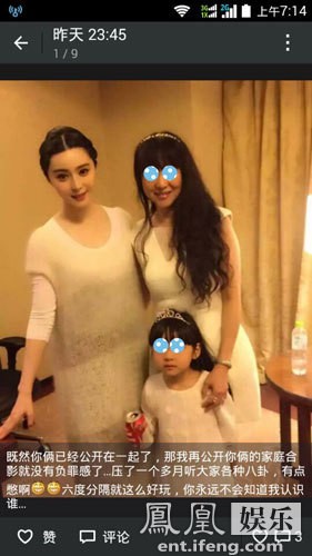 范冰冰李晨家庭聚会照流出 马赛克打得好有逗比