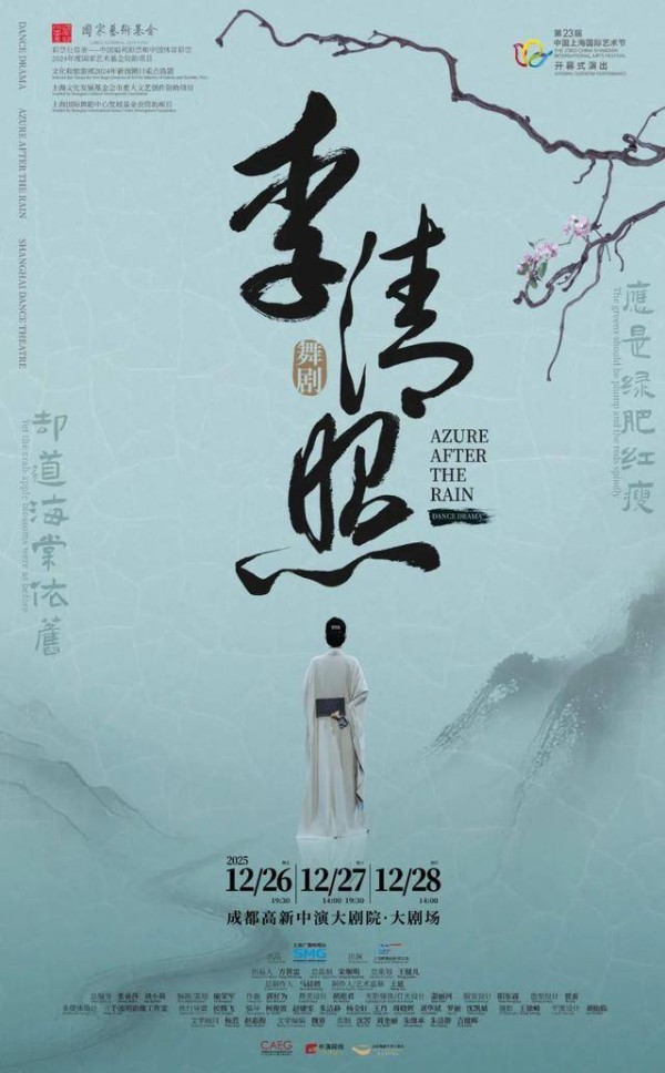 以词为舟、以舞为桨。舞剧《李清照》以宋代美学为底色,将汝瓷素净淡雅的釉色浸染全场,舞台设计深汲宋韵精髓——简约中见圆融,素雅中藏匠心。该剧以李清照跌宕的人生经历为基石,并以其经典的词赋作为支撑,串联出整部舞剧的叙事。李清照的鲜活人物形象在舞台上一点一点树立,并一步一步走近观众。