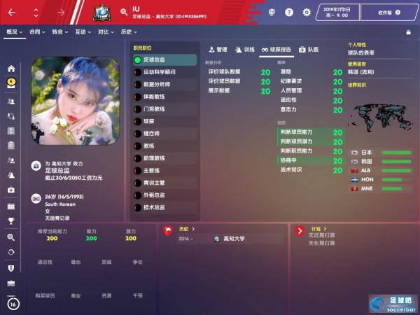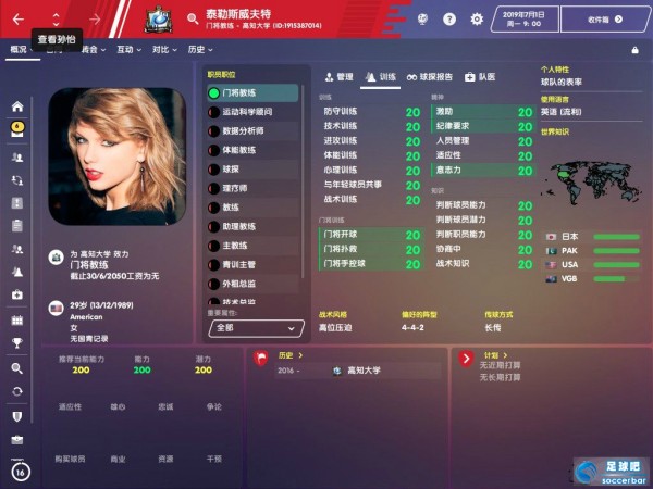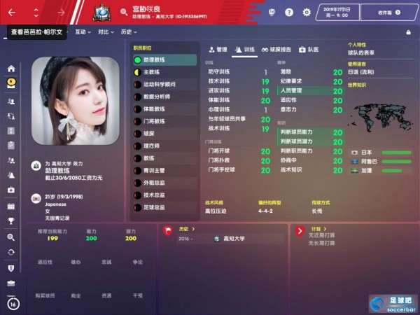 总共151名:足总/技总/外租/青训各2名,助教3名,教练36名(3种属性各12名).体能/门将各12名,球探32名,分析/运动科学各名14名,理疗师20名。属性全满不喜欢的自行去修改,大部分在日本高知大学,分析和运动科学在伊斯特本,只要不是声望太低。基本都愿意来中超也可以。