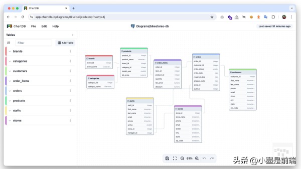 大家好!我是小墨,本期给大家推荐一个宝藏级数据库可视化工具——ChartDB。它能帮你快速生成数据库图表,告别繁琐的手动绘制,绝对是数据库开发人员的福音!