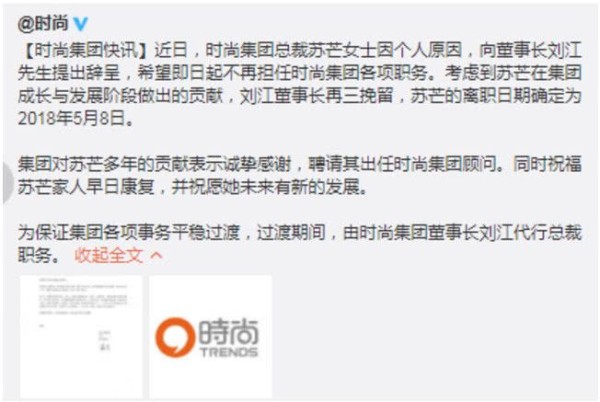 苏芒为什么突然离职时尚集团 苏芒辞职的真正原因是什么