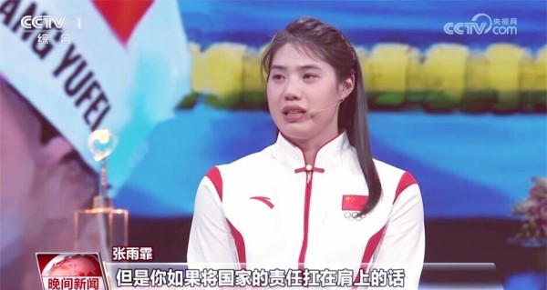 张雨霏:“累,有些比赛可以是为了自己,但有些比赛是为了国家。如果只谈自己的理想,我可以去说我喜欢、我不喜欢,我想做或者我不想做,但是如果将国家的责任扛在肩上,那就只有一个字——做。”