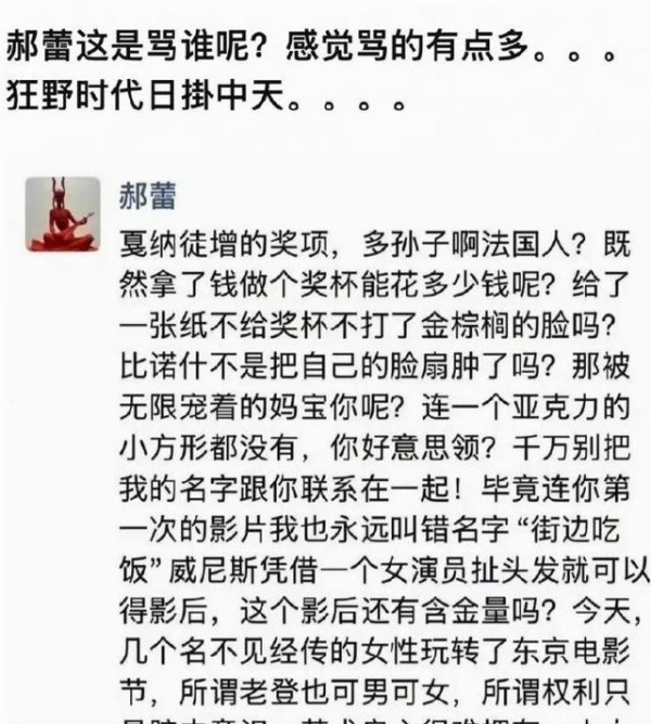 还顺带提到什么戛纳特别奖、评委会收钱临时加奖项,把矛头直指行业内的不正之风和某些电影节背后的猫腻。