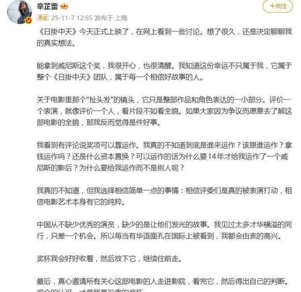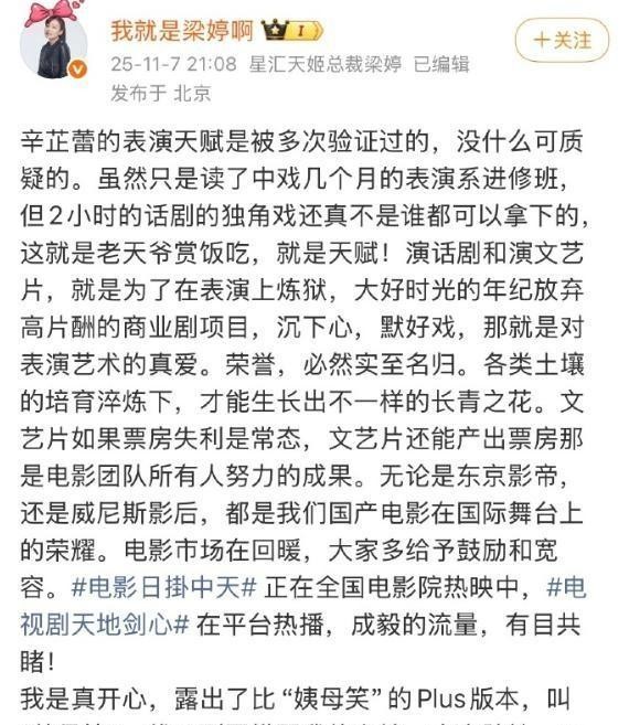 辛芷蕾威尼斯获奖后,昔日“婷妈”梁婷发长文控诉,和解背后让人唏嘘