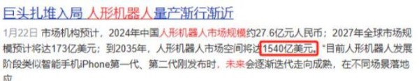 有预测说,2027年全球市场规模能到173亿美元,到2035年,人形机器人市场空间能达到1540亿美元!
