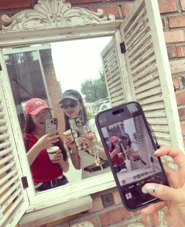 陈梦晒照和宋茜逛吃逛喝,两人好合拍一起拍照好得意,棉拖鞋抢镜