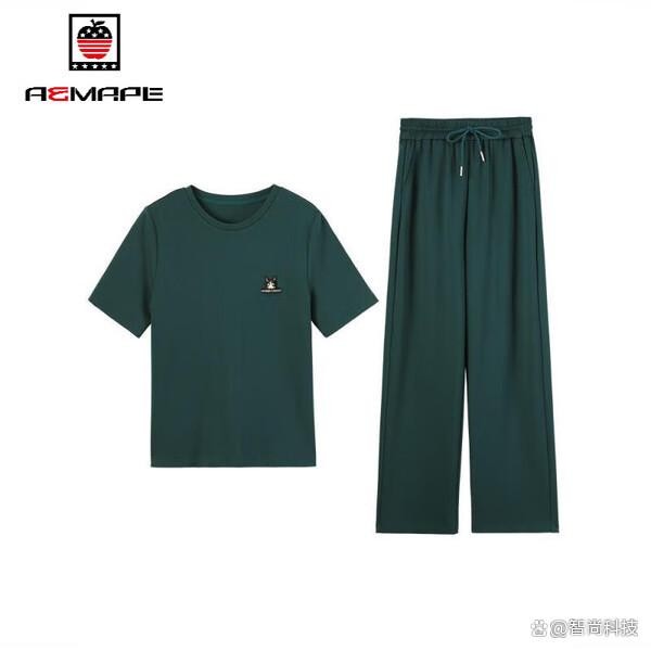 一、AEMAPE短袖运动服休闲裤套装女2025春夏薄款时尚韩系宽松显瘦休闲百搭 墨绿色 XL 120-135斤