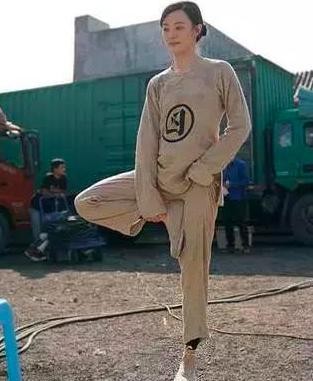 我们再来看李冰冰的瑜伽树式,她好像也是放在了膝关节处,但是仔细观察就会发现,她并没有把脚压在膝关节处,而是靠着上抬腿的肌肉直接腾空稳定住,这其实没有问题。