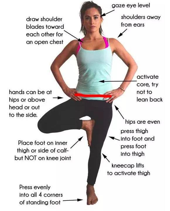 山式站立,屈右膝,右膝向右侧打开用右手将右脚掌放在左大腿内侧上端大腿根部,尽量靠近会阴处,脚尖指向正下方左脚用力向下踩,左大腿伸直,大腿肌肉收紧,右脚与左大腿互抵用力,保持身体重心的稳定双手经体侧向上举过头顶,双手合十,双肩放松,眼睛平视前方呼气,右脚落地,放下手臂,换另一侧练习按照练习步骤,很多人还是会犯错,因为里面有很多细节,练习步骤没有讲到,下面就详细说一说。