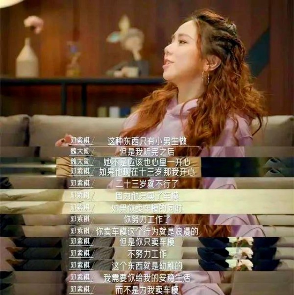 邓紫棋进一步阐述道,“如果仅限于售卖车模,而不去努力工作,那这种行为就显得相当幼稚。”她认为,过分的深情其实是一种不够成熟的表现,男生在表达深情的同时,也应当展现出足够的成熟与稳重。