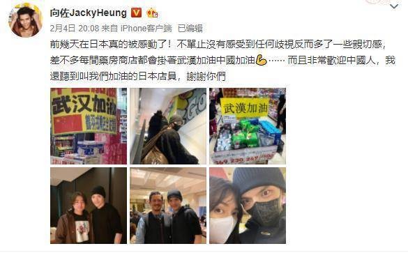 虽然在这一特殊时期,很多明星都被迫待在了家里,不过还是有明星在外出活动。向佐郭碧婷近日就晒出了自己在日本游玩的动态,向佐还在文案中表示,虽然是特殊时期,可是在日本却感受到了亲切和关怀,不仅没有被歧视,药房商店里还都挂着“武汉加油、中国加油”的牌子,让人感动。