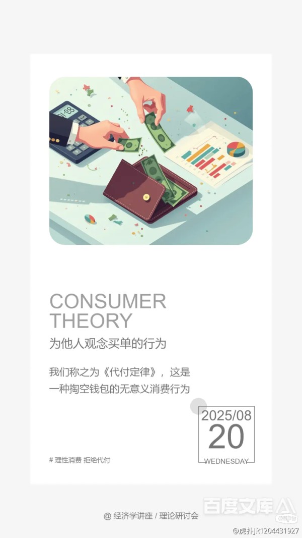 "为别人的想法、观念、赞美而产生的无意义消费行为",即消费者因外部影响(如社交圈层、媒体宣传等)而非真实需求买单的行为模式。该理论揭示了现代消费中普遍存在的非理性心理机制,如奢侈品炫耀性消费、网红产品跟风等现象。
