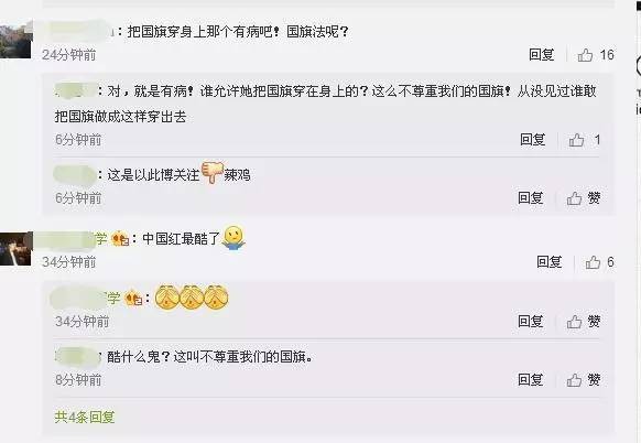 然后还有几个不知名的网红,其中一个还真是绝了,居然把国旗穿在身上了,怕人家不知道她是中国人?