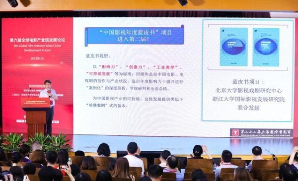 在《中国电影蓝皮书2019》《中国电视剧蓝皮书2019》首发现场,北京大学影视戏剧中心主任陈旭光和浙江大学国际影视发展研究院执行院长范志忠还进行了题为“互联网时代中国影视创意力、想象力、影响力”的主旨演讲。