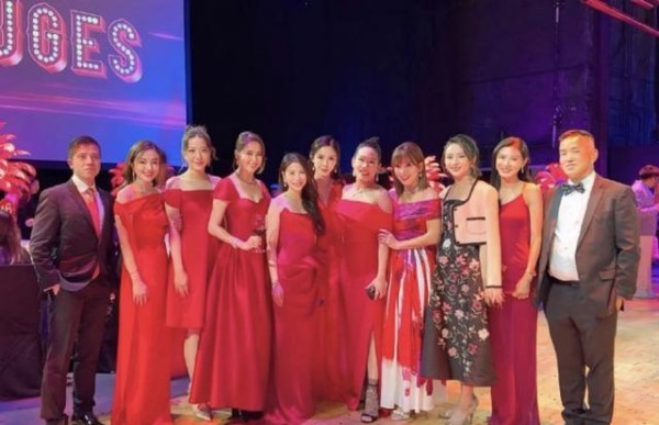 按大会要求女士要穿红裙子,大部分名媛都乖乖照做。一排排的大红色长裙,把整个会场映衬得特别喜庆。不过除了常客伍叶靖怡、何倍倩这些“熟脸”,最让人意外的是玩具大王蔡志明家的儿媳汪圆圆也来了。这姐平时极少参与公开社交,但这次居然现身,还专门挑了一件一字肩大红裙,上半身利落,下摆刚过膝盖,再配金粉包包和高跟鞋,小细节全安排好了。