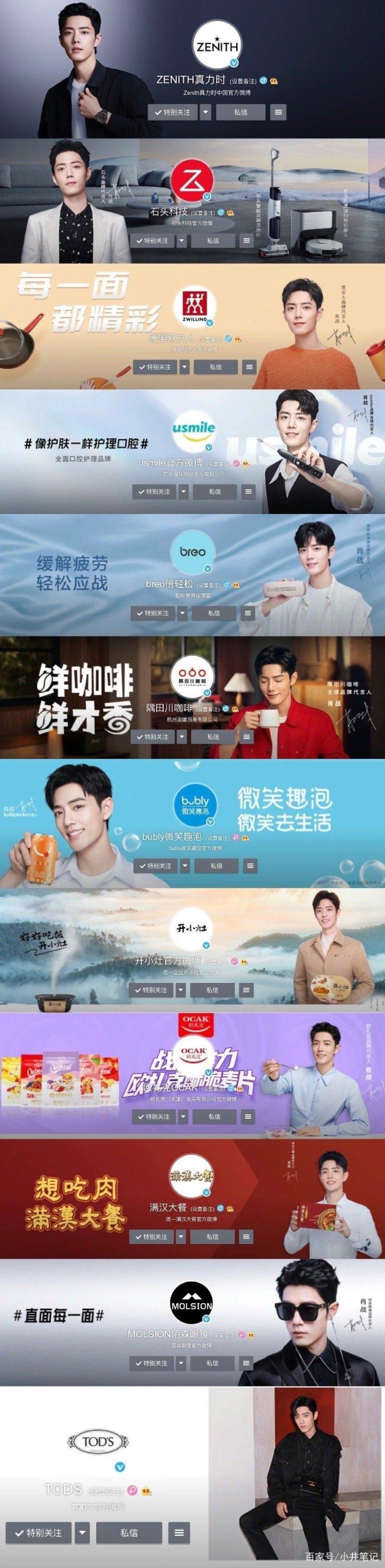 满满仪式感:肖战13个代言的置顶封面肖战代言品牌13个置顶封面图,呈现出满满的仪式感!
