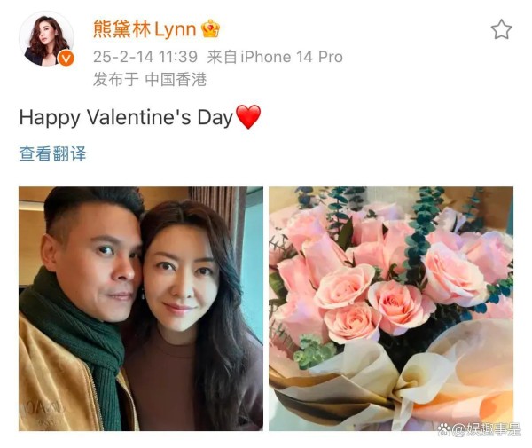 熊黛林在情人节之际晒出与丈夫郭可颂的合照,以此来欢庆佳节。这对夫妻亲昵地贴脸相依,将恩爱甜蜜的模样展现得淋漓尽致。44 岁的熊黛林容颜美丽且大气,气质极为出众,着实不愧是一位名模。这对夫妇于 2016 年踏入了婚姻的殿堂,婚后顺利地迎来了一对双胞胎女儿,进而组成了幸福美满的四口之家。