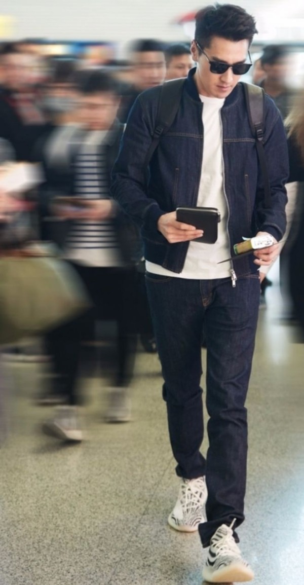 赵又廷脚上穿的这双运动鞋正是大名鼎鼎的Adidas Originals YEEZY椰子鞋,非常特别的斑马配色,搭配上深色的牛仔套装,显得整个人简单利落,又帅气十足。